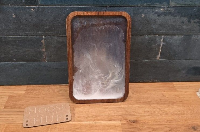 Elevate your home décor with our handmade wood and resin tray, inspired by nature crafted by us. This unique trinket features a stunning wood epoxy design, perfect for displaying small items or preventing crumbs. The resin coating adds a touch of elegance and durability, making it a versatile and eye-catching addition to any room. Embrace the beauty of nature with this one-of-a-kind tray that is sure to stand out and complement your aesthetic. Shop now and add a touch of natural charm to your space!